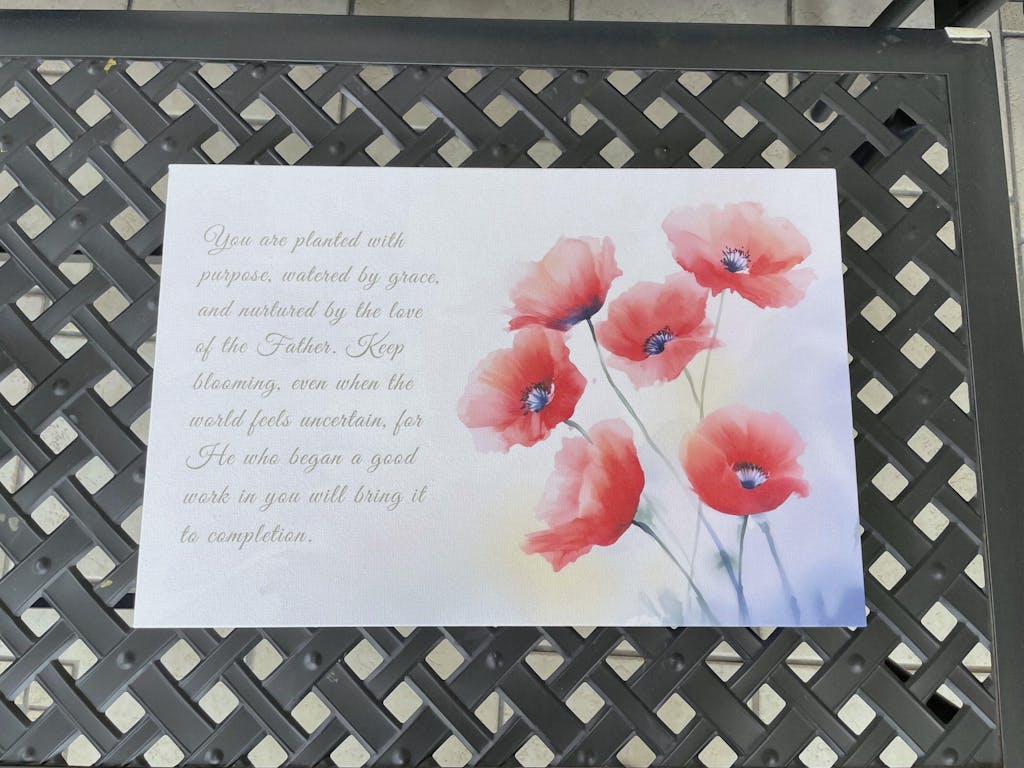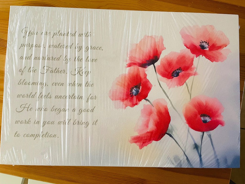 Bring a sense of peace and divine promise to your home with our Red Poppies Watercolor Christian Scripture Wall Art. This elegant piece features delicate, hand-painted red florals paired with the powerful encouragement of Philippians 1:6: "He who began a good work in you will bring it to completion."
