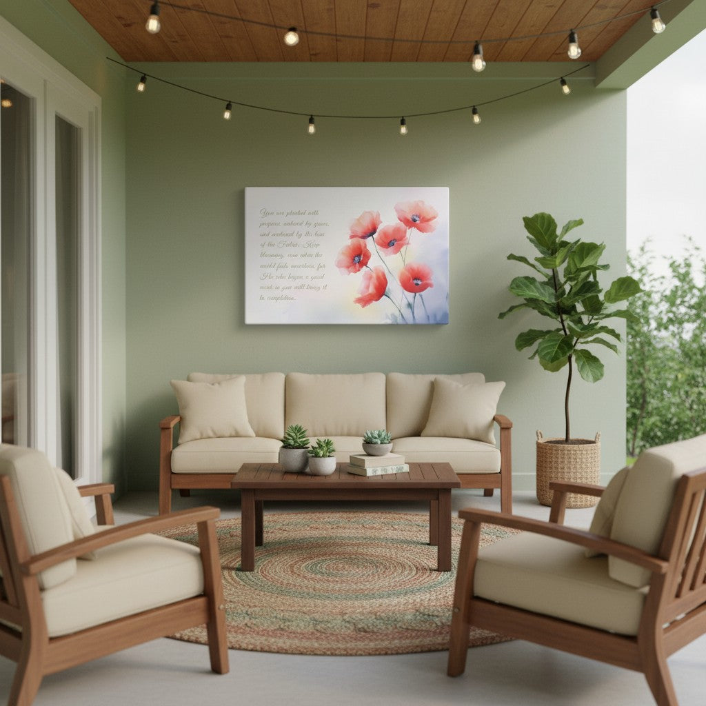 Be reminded of God’s ongoing work in your life with this Red Poppies Watercolor wall art. Inspired by Philippians 1:6, this artwork pairs delicate floral design with the promise that ‘He who began a good work in you will bring it to completion.’ Fine art print and canvas available.