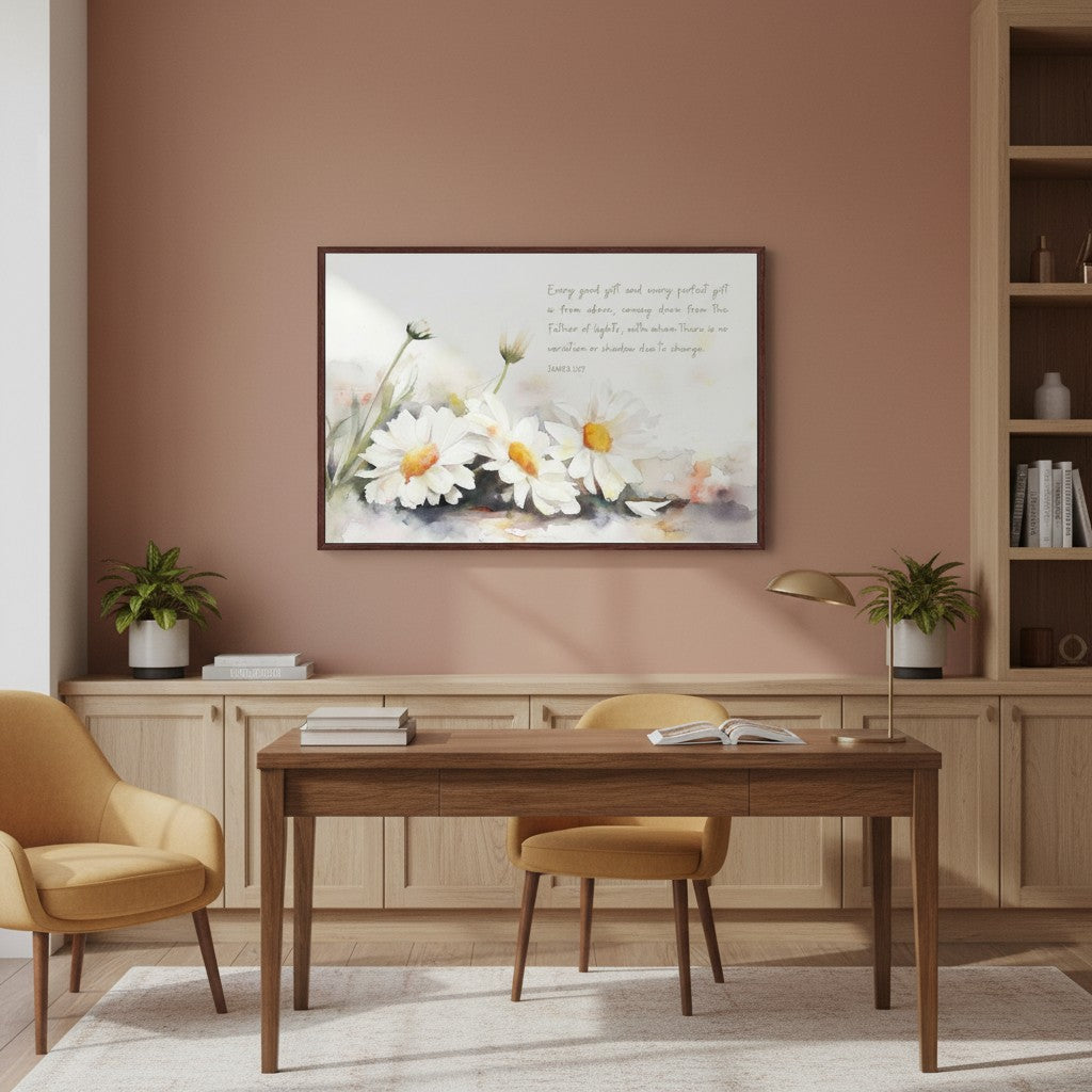 Every Good Gift, White Daisies Watercolor Scripture Wall Art, James 1:17